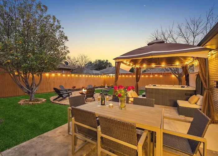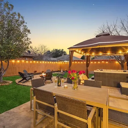 Zen Back Yard With Hot Tub, Firepit, Spa At Home Dallas